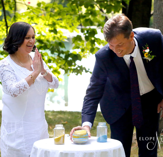 Little spark of happiness We found Elope Niagara's Little Log Wedding Chapel by googling "Drive thru wedding" as a joke ... needless to say we were sold when we saw photos of this adorable little chapel just outside of Niagara Falls. It was perfect for a small intimate wedding with just our loved ones to witness our special day. To make the day even more epic, we got married on May the 4th aka Star Wars day and Kim offered us Star Wars themed vows (which was a bonus). Also the professional mini photo session was fun and casual. Honestly, Kathy and Kim exceeded our expectations and raised the bar. We could not have asked for a better team to help us have a more perfect wedding!